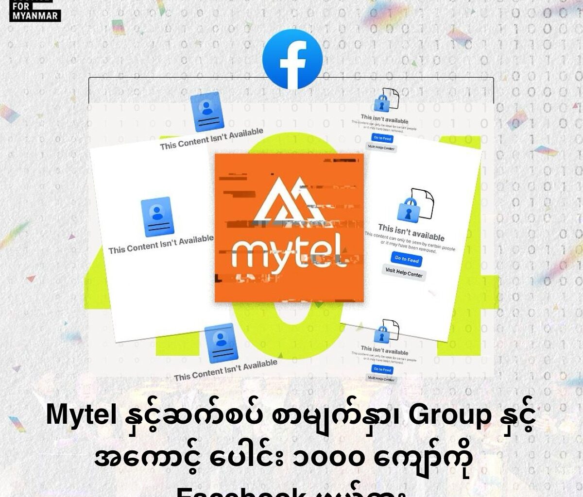 Facebook ဟာ မိုင်တဲလ်၊ မိုင်တဲလ်ကိုယ်စားလှယ်များနဲ့ လက်လီအရောင်းဆိုင်တွေရဲ့ စာမျက်နှာပေါင်း ၁၀၀၀ ကျော်ကို ဖယ်ရှားလိုက်တဲ့အတွက် မြန်မာစစ်တပ်ထိန်းချုပ်ထားတဲ့ ဆက်သွယ်ရေးကွန်ရက် အွန်လိုင်းတည်ရှိမှုအပေါ် ကြီးမားတဲ့ ထိုးနှက်ချက်တစ်ခု ဖြစ်လာစေတယ်လို့ ဆိုပါတယ်။
