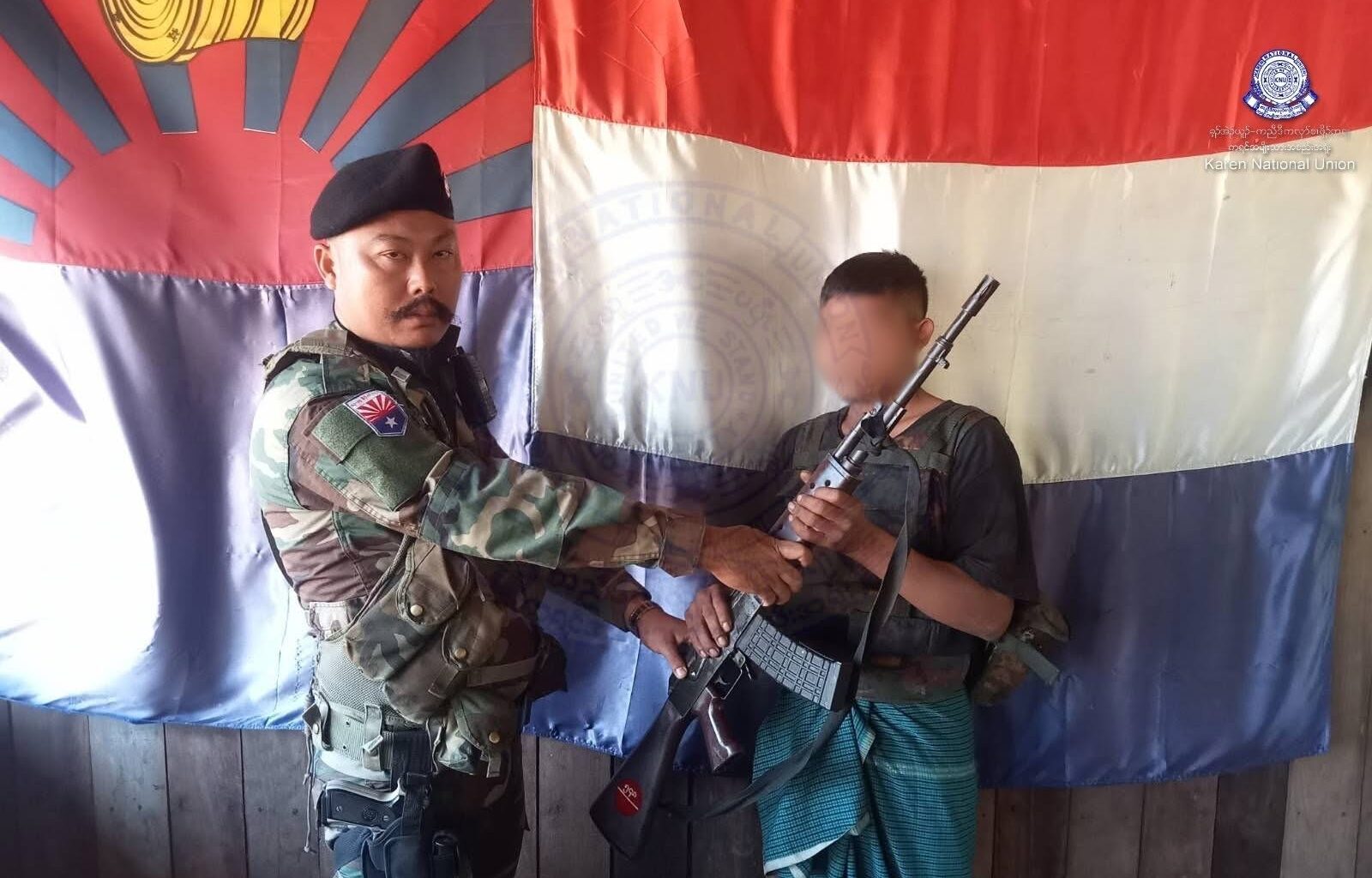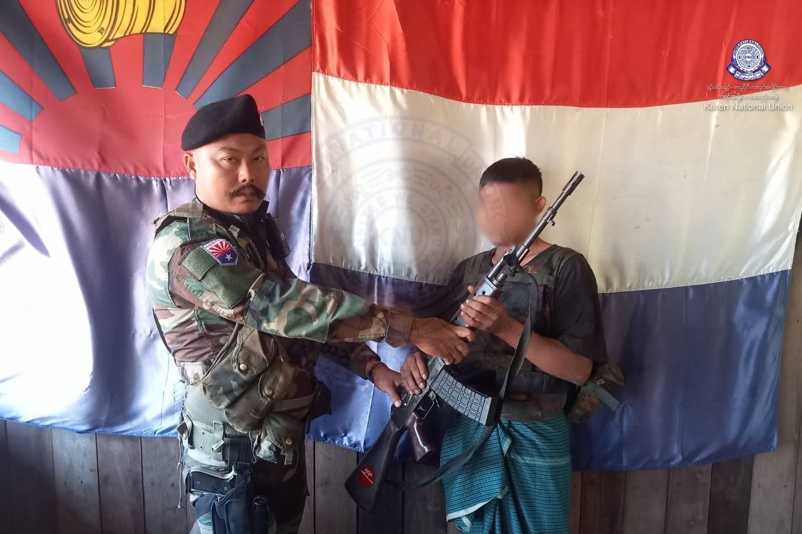 ပြီးခဲ့တဲ့ဇန်နဝါရီလ ၁၂ ရက်နေ့မှာ အာဏာသိမ်းအကြမ်းဖက်စစ်တပ် ခမရ-၅၄၈ က အတင်းအဓမ္မစစ်မှုထမ်း စေခိုင်းခံရသူ တပ်သား စည်သူဟိန်း ၂၅ နှစ် နဲ့ မောင်မောင်စိုး ၂၄ နှစ် တို့ဟာ လက်နက်တွေနဲ့အတူ KNU/ KNLA ဆီ လက်နက်ချ အလင်းဝင် ဘက်ပြောင်းခိုလှုံလာတာလို့ ထုတ်ပြန်ချက်က ဆိုပါတယ်။