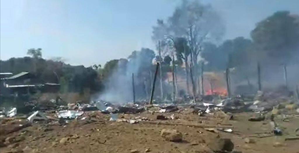 တပ်ကုန်းရွာကို စစ်တပ်က လေကြောင်း ဗုံးကြဲသွားစဥ်