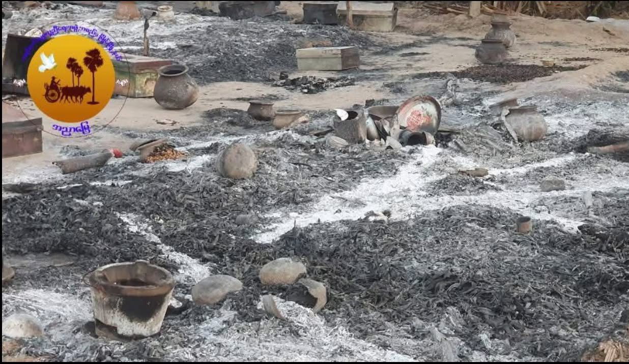 အဲ့ဒီနောက် ရွာထဲက ဆိတ်၊ ဝက် တိရိစ္ဆာန်တွေကို သတ်ဖြတ်စားသောက်ခဲ့ပြီး တောတိုက်(ခေါ်) တောအတွင်းက အရပ်သားစစ်ရှောင်နေအိမ်တွေနဲ့ တော်လှန်ရေးတပ်ဖွဲ့ဝင်တွေရဲ့ အထိမ်းအမှတ်ကျောက်တိုင်တွေပါ မီးရှို့ဖျက်ဆီးသွားတယ်လို့ အညာမြေအရပ်ဖက် လူမှုအဖွဲ့အစည်း-မြိုင်တာဝန်ရှိသူက အခုလိုဆက်ပြောပါတယ်။