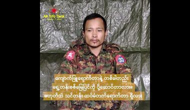 IInterviews Read More 1 minute read ပြည်သူ့စစ်တွေကို ရှေ့ဆုံးကတိုက်ပွဲဝင်ခိုင်းနေကြောင်း တပ်မ ၁၁ လက်အောက်ခံ ခမရ ၂၁၆ တပ်ရင်းမှ တပ်သား မောင်မောင်ဝင်း ထွက်ဆိုချက် (ရုပ်/သံ)August 8, 2025 ရခိုင်ပြည်နယ် ကျောက်ဖြူမြို့မှာ လက်ရှိဖြစ်ပွားနေတဲ့ တိုက်ပွဲအတွင်း ပြည်သူ့စစ်တွေကို ရှေ့ဆုံး ကနေ တိုက်ပွဲဝင်ခိုင်းနေကြောင်း အကြမ်းဖက်စစ်ကောင်စီရဲ့ တပ်မ ၁၁ လက်အောက်ခံ ခမရ ၂၁၆ တပ်ရင်းမှ ပြည်သူ့စစ်တပ်သား မောင်မောင်ဝင်းက အာရက္ခတပ်တော်ထံ ထွက်ဆိုခဲ့ပါတယ်။